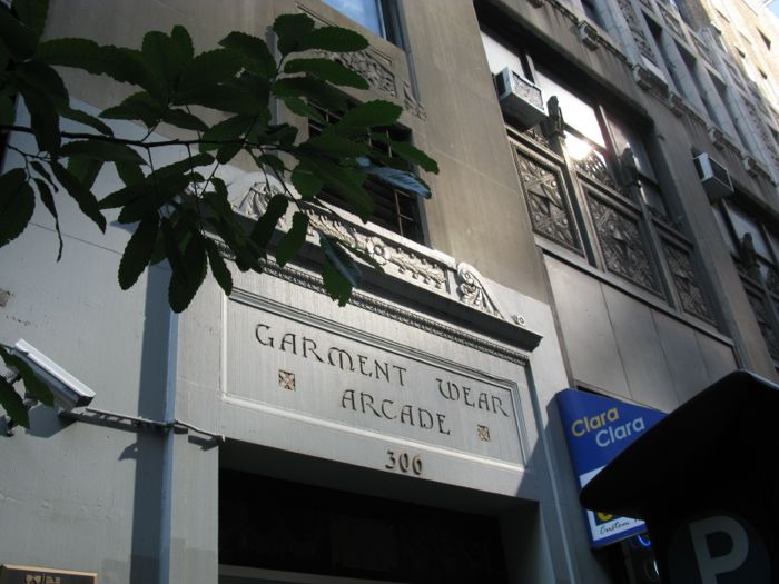 It’s easy to forget that a lot of clothing has passed through the doors in this section of town, like this “Garment Wear Arcade.”