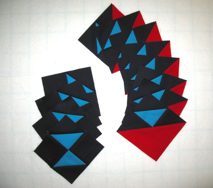Today I’m all caught up with my Amish With A Twist-2 Block of the Month program with the completion of these four, plus the components shown below.