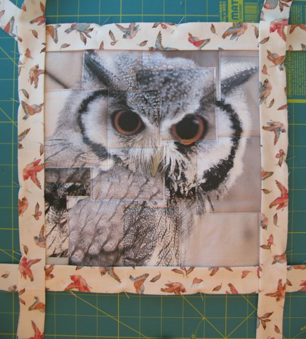 I peeled off the freezer paper carefully and cut apart my sixteen squares of Mr. Owl.