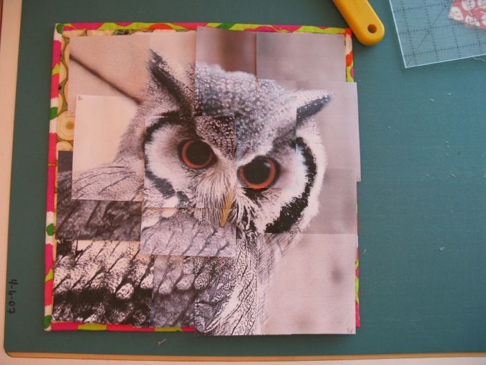 So, all the incongruent small pieces — the images, the tiling, the layering, the stitching — all merged into a lovely congruence of an owl, just like the metaphoric meanings discussed yesterday. All combine into that creature that captures our imagination while mystifying us as well.