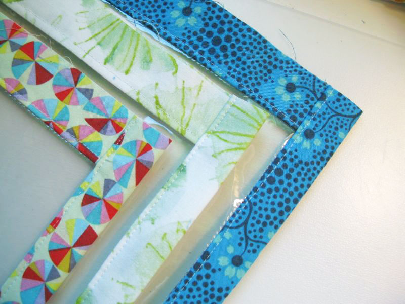 Trim the fabric strips even with the vinyl. Repeat on other shorter side.