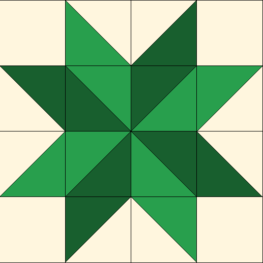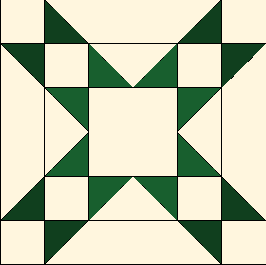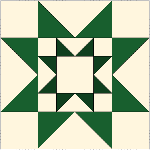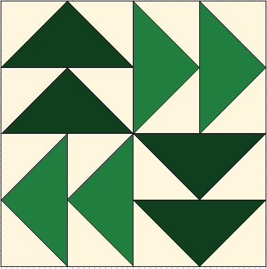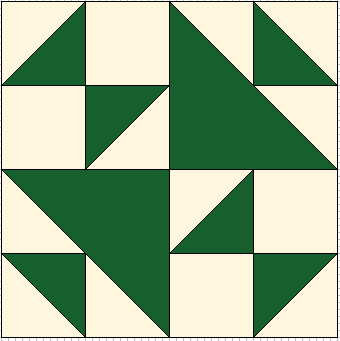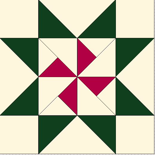 And I’ve chosen to have my bee-mates help me on my Christmas Quilt.  But so that the copyright gods won’t be mad at me, I’m not showing the picture of the pattern and I’ve also chosen different green and cream blocks for my bee-mates to make, plus I made downloadable templates from my quilt program to serve as a guide for these 12″ blocks  (finished measurement–raw edge measurement should be 12 1/2″).  Below are the blocks, plus their templates for downloading.
