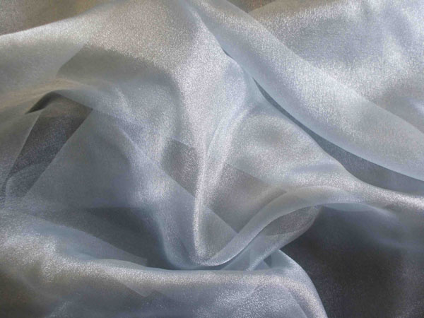 Organza is a thin, plain weave, sheer fabric traditionally made from silk. Many modern organzas are woven with synthetic filament fibers such as polyester or nylon.  The Casa Collection of sheers at JoAnn Fabrics is an light-reflecting organza, and it is light and soft with lots of drapability.
