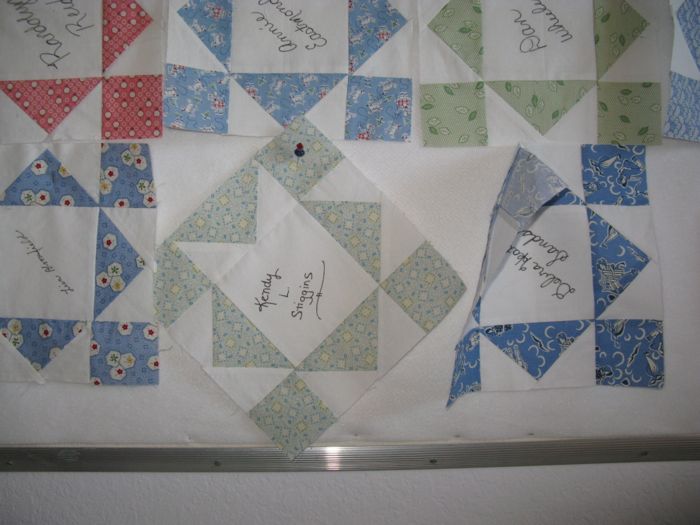 Whoops. I had to fix one of them. Mind you, that block has been like that for nearly eight years, and I’m just now noticing it. What’s fun about working with signature blocks is that you think about the person who’s name you are holding. Kendy would have a fit if her block were wrong, as she was always perfectly put together and perfectly modulated in all comportment. (Look it up–I kid you not.)