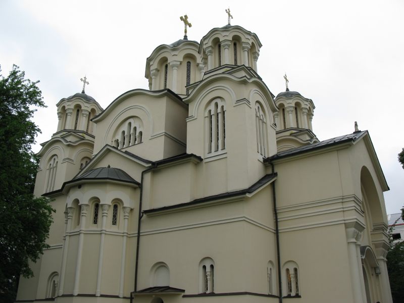 From the Serbian Orthodox Church in Ljubljana, Slovenia, which is beautifully painted on the inside (see blurry photo below), and has rich colors and lots and lots of circles.  We recently visited that country, and my husband was under strict instructions to photograph any and all circles, so we gathered quite a few ideas.