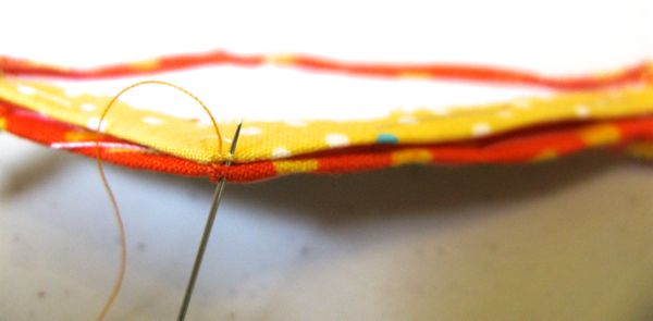 Use pins as you need to to get control as the pieces get narrower.  I always take a double stitch at the end of my seam, then take the needle through the loop and draw it tight to secure.