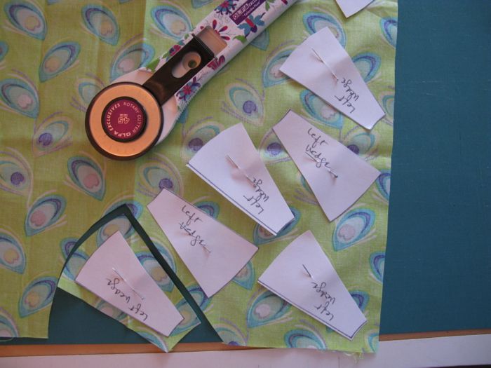 Those outer arcs I knew would be confusing once they were covered with fabric, so I prepped up the pattern by drawing arrows pointing to the top center-most point.  This will help when I try to sew them together later.  (I should have drawn them on both sides, as I ended up putting the printed side UP.  Sometimes I am my own worst sewing enemy.)