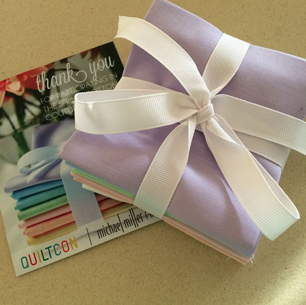 While I did enter it into QuiltCon’s Challenge, it was not accepted. Even though I have no way of knowing what the criteria were, other than “predominant use of the Cotton Couture Pastels” and all Michael Miller fabrics, I’m not that put out. I followed the only rules available to me, I finished a quilt made with gifted fabric (and purchased some more) so I figure I fulfilled my part of the bargain.