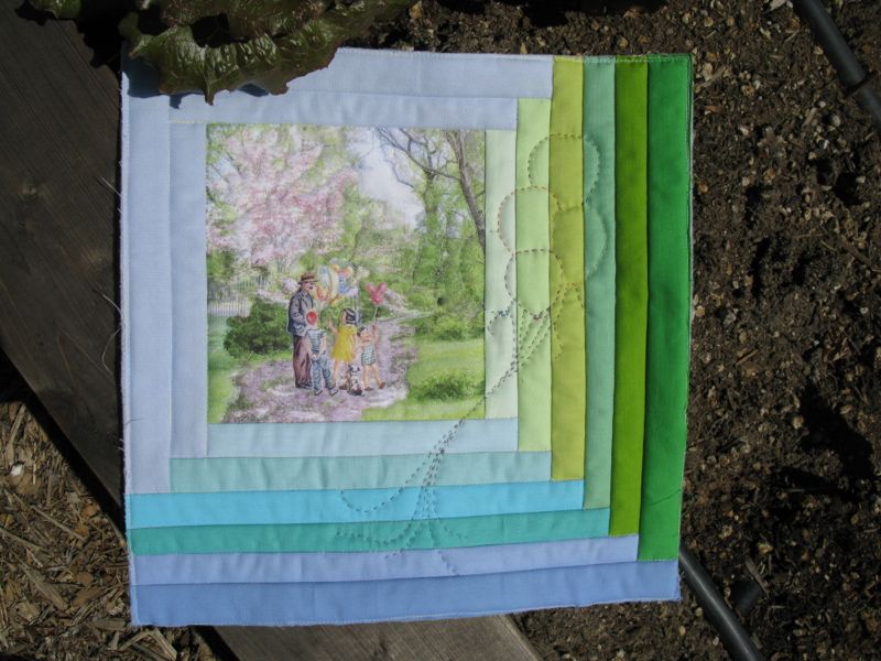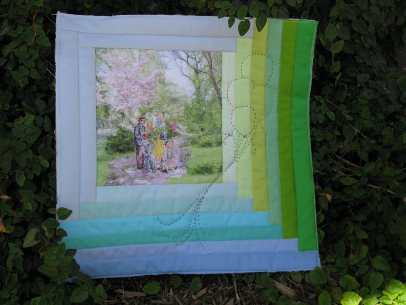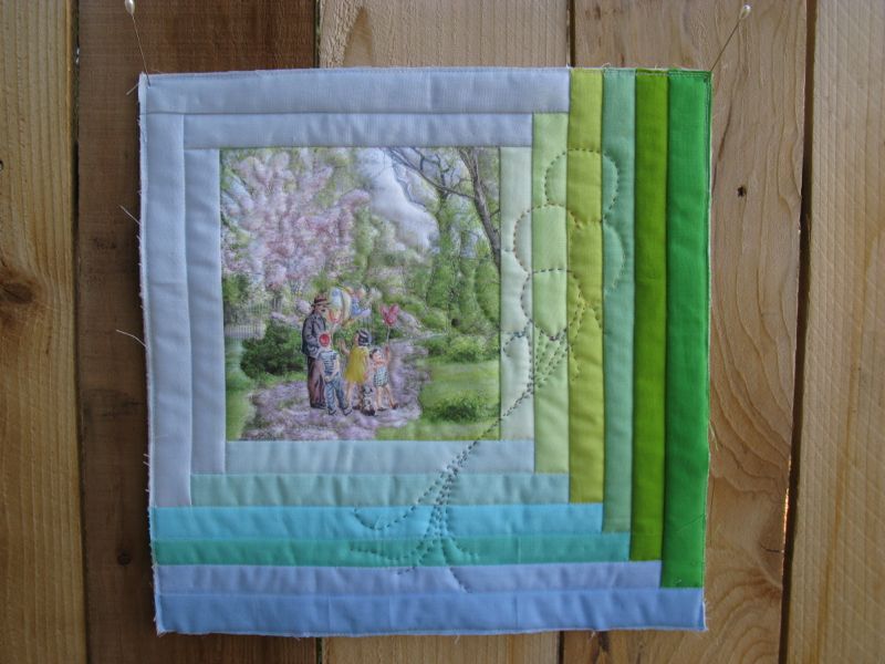 6. The perspective created by your log cabin border does a wonderful job of drawing your eye to the central panel and just as your last quilt captured the blue-white sparkly cold of the season, the colours of this one are just right for the spring. I guess the children in the poem will grow fast into the summer of their lives.