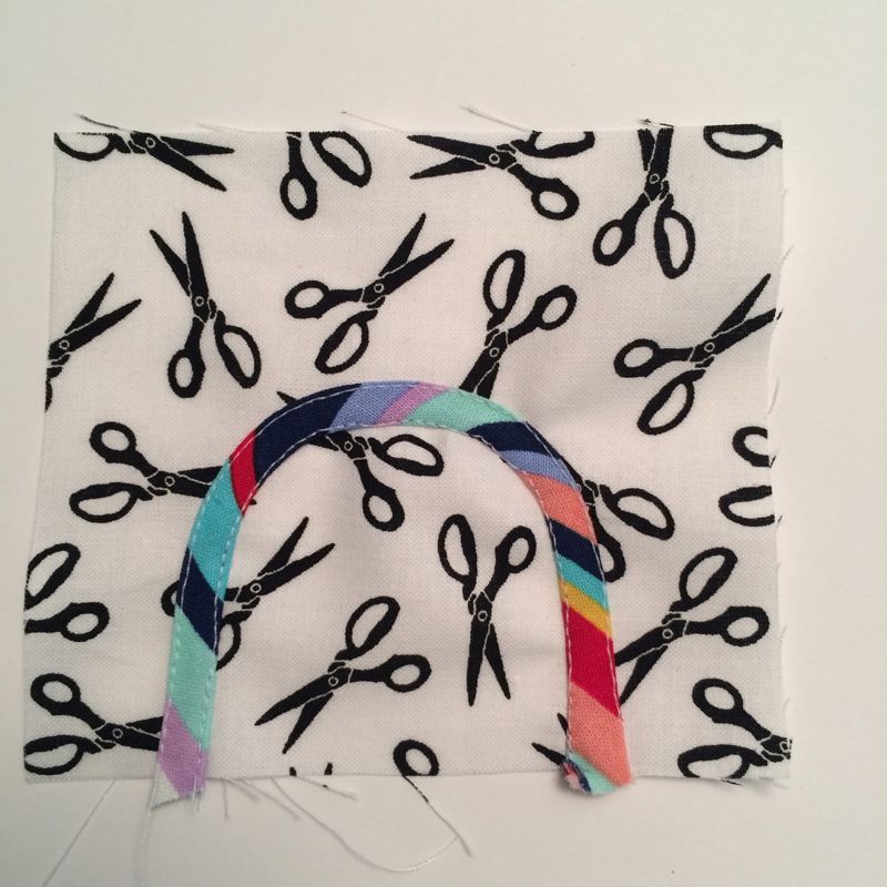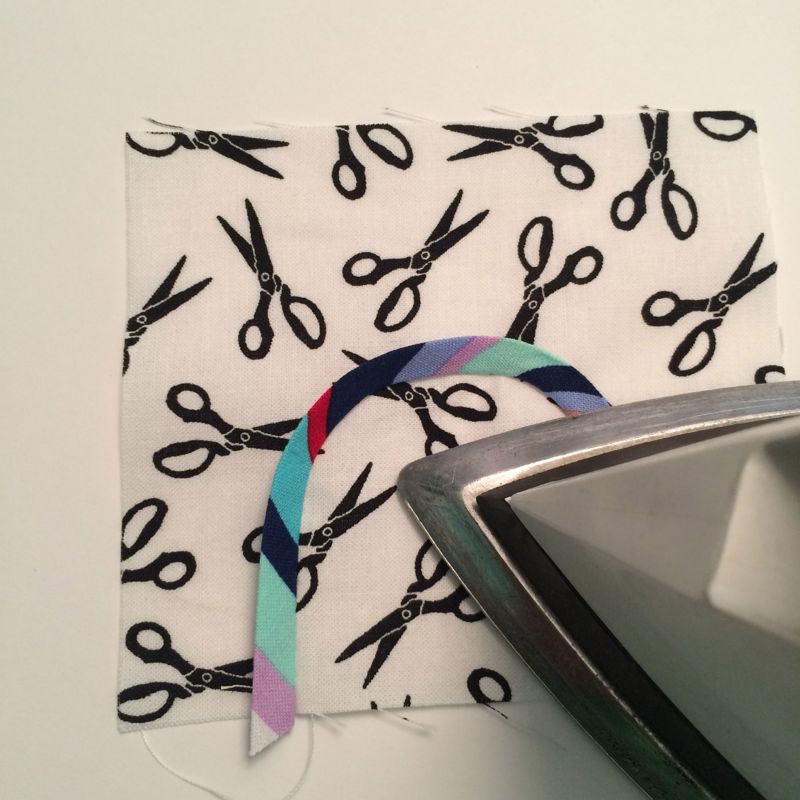 Now press the bias strip outward–letting the fabric fall back over the stitched line and the raw edges.