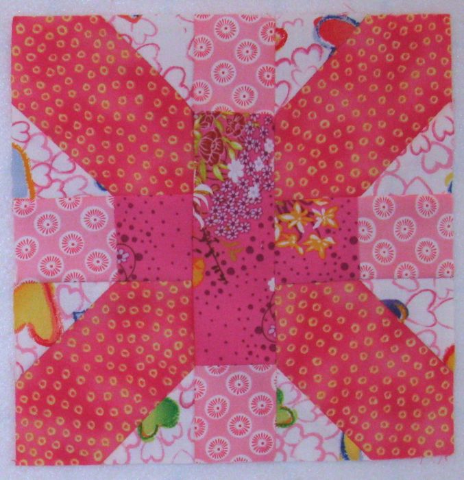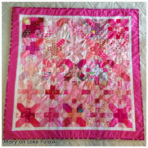 These two fun pink Cross-X blocks were for Mary, of Mary on Lake Pulaski. She turned our blocks into this quilt: