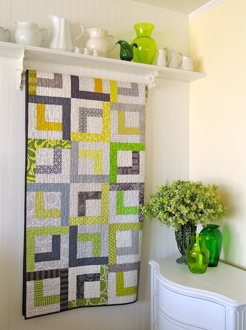 Here was mine. This was fun because I was able to use a lot of stash fabrics and it still looks interesting and modern-ish.