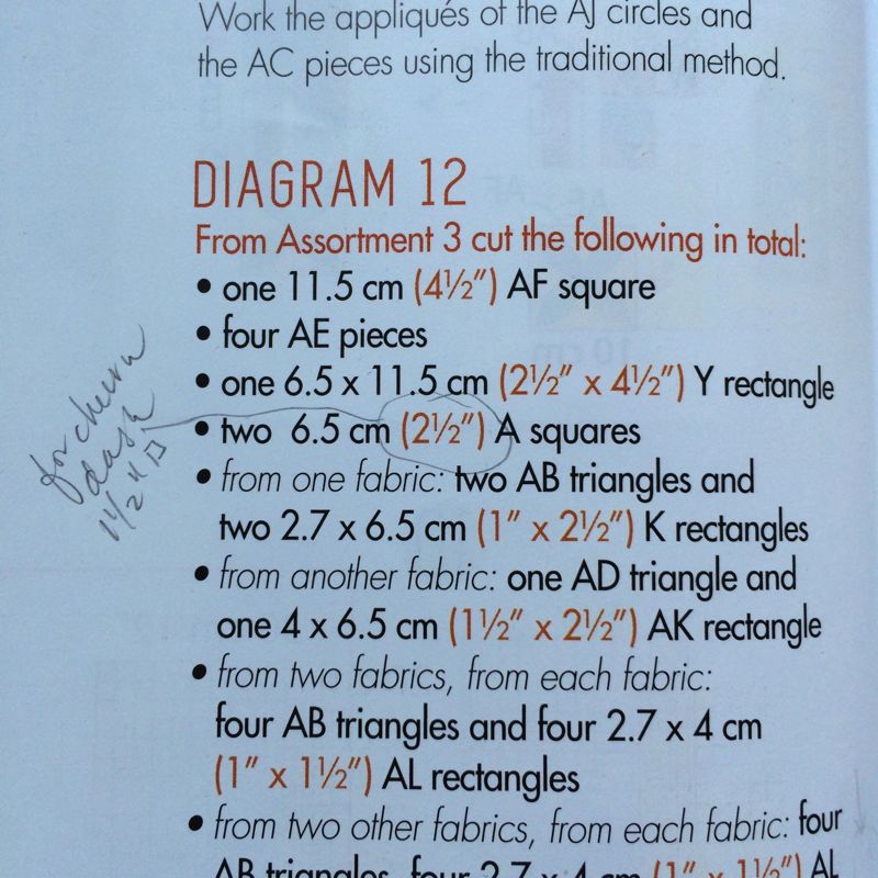 A hot air balloon??!!!! I just finished embroidering mine for the sixth part of the sky! I wished I’d had a scrap of that instead! Hot air balloons often frequent the Melbourne skies! Thankfully your health check was the news you were hoping for. I had thought that 2.5″ square was incorrectly labelled but didn’t have the mental strength to go back and check! Another of the later sections is still in French in my issue……Can you find that one and work out what it says?? Just another challenge for you…..