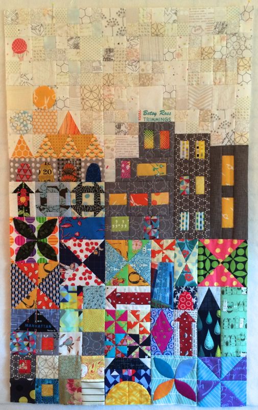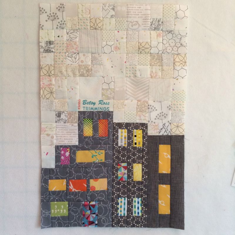 Buildings and some sky. Now to start on the details. I found reading Susan’s entries on her PatchworknPlay blog was helpful, too.