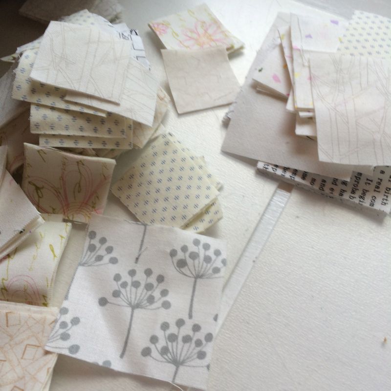 Judging by the photos on Instagram, we all start here: cutting sky pieces. I did neutrals for a while, then started adding in whispy blues, just to make it more interesting, as I’d seen others do it. It’s that idea of collaboration, as expressed in my last blog post.