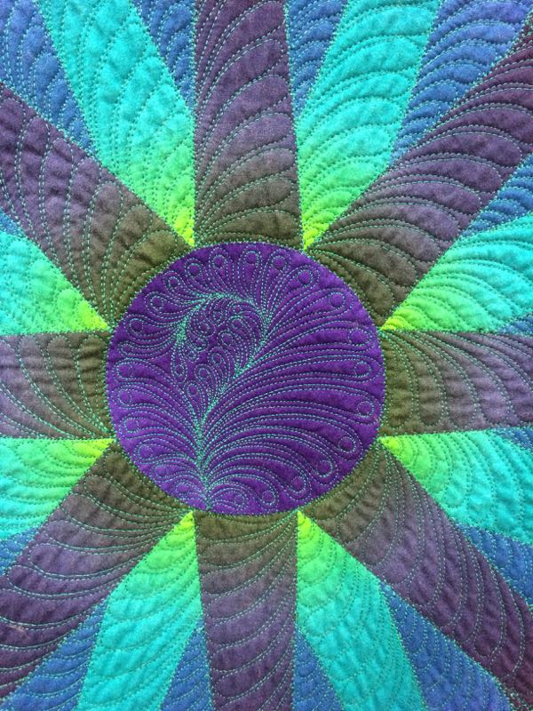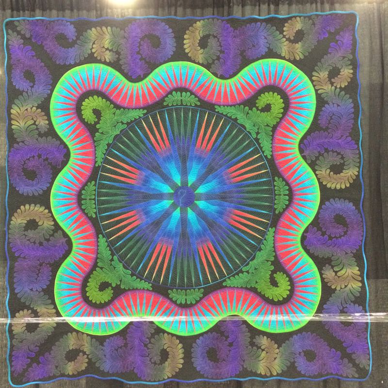 White Holes by Peter Hayward.  His notes state that “I wanted to take the basic concept behind op art quilts to a new level by adding color gradation and concentric lines as a way of enhancing the 3-D effect.”QMIke_magicalZone1