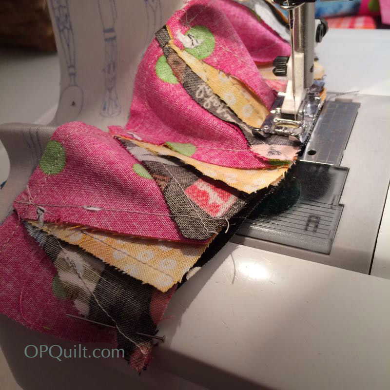 Stitch on that line, trim seam allowances and continue on.  They all line up nice and vertical.