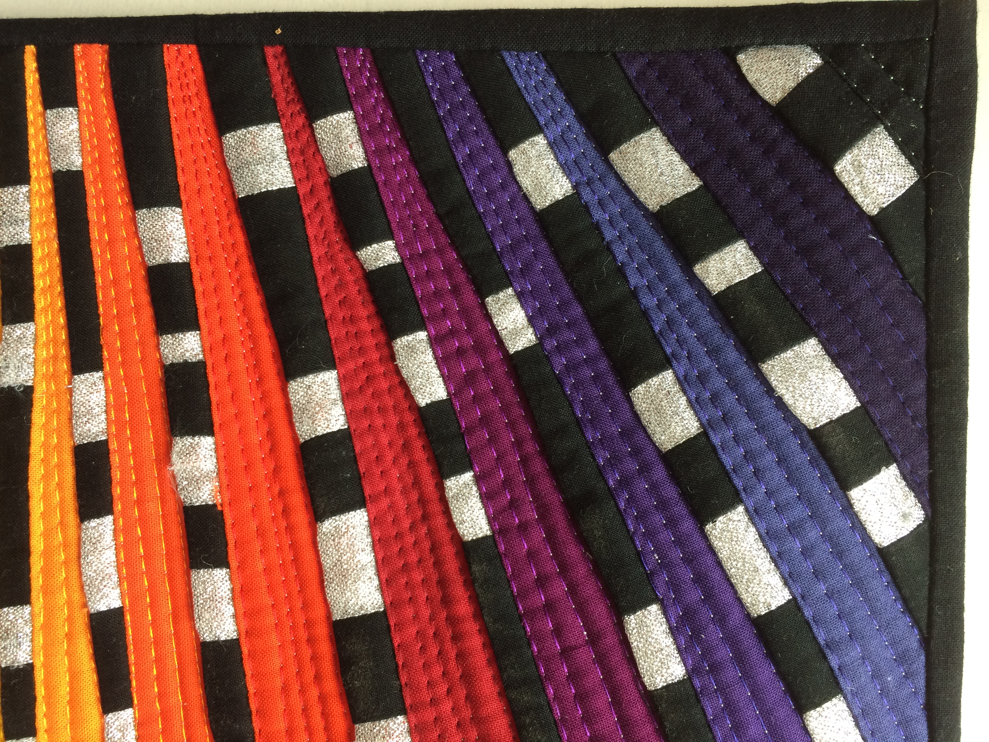 2. You’ve interpreted the display beautifully. I can imagine how difficult it was to turn it into the “flatness” of fabric, but those glistening bits in between… is that reflective fabric? Perhaps you’re saving that info for your next post. In any case, it’s a neat piece. I hope you have a place to hang it!