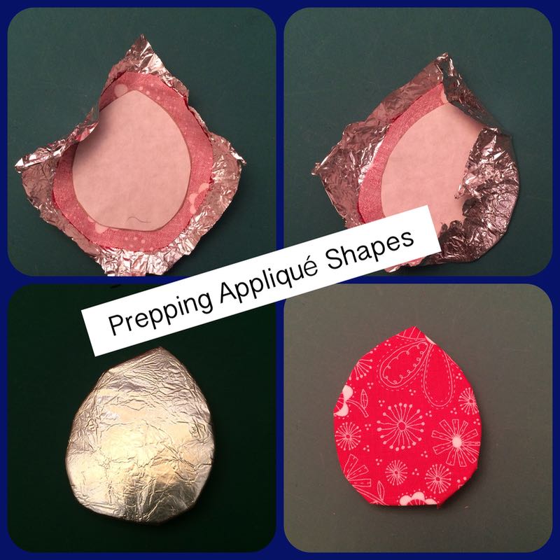 The secret to the foil prep for applique is to make sure the edges are smooth so that the fabric underneath is smooth…hope that makes sense! I have made many 1/4″ circles this way and it works great. If you have the patience, you can make a whole bunch and just leave them to dry (versus ironing them). The tiny ones end up looking like Hershey’s kisses!
