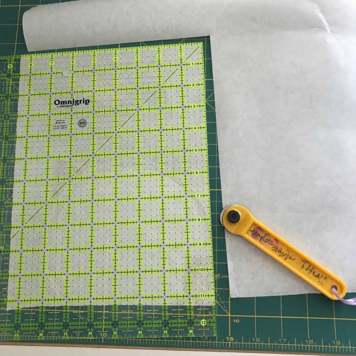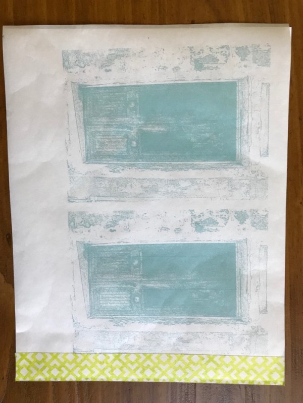 I trimmed the freezer paper to size, taped it to a piece of cardstock at the top edge and fed it through the printer. Mine has a rear cassette access, so the paper path is flow-through (it’s the reason I purchased this one). Since I’m making one of my tiny picture-stand quilts, there are two images per page.