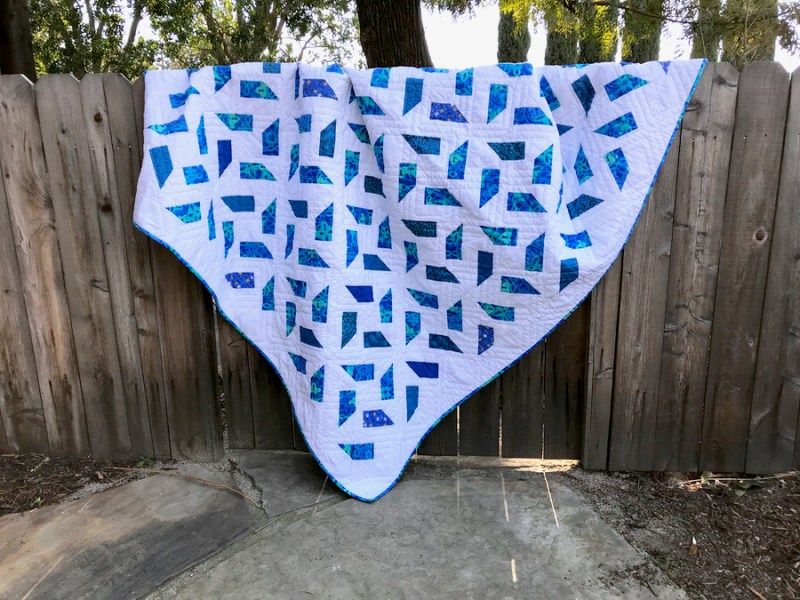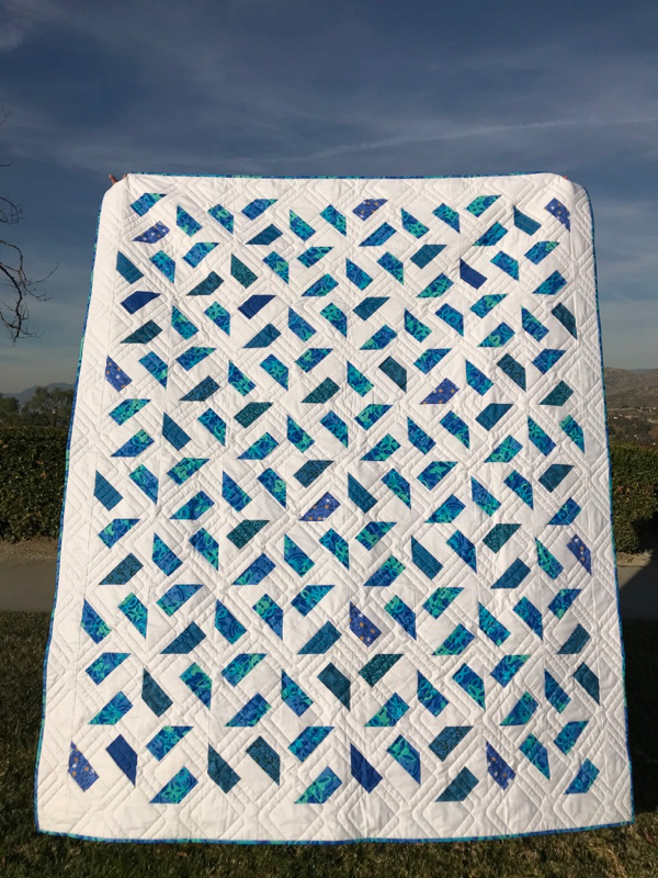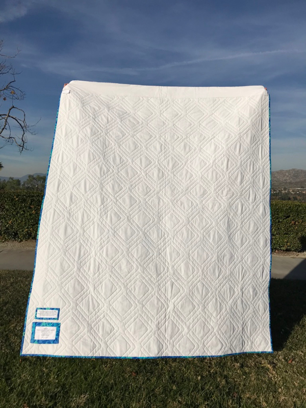 So why if I finished it in November, have I not put it up here until now?  Two reasons: one is I was seeing if my favorite magazine was interested (not this time, they said), and secondly, it was slated to hang at Road to California with a collection of modern quilts made by my guild, the Inland Empire Quilt Guild.  We were honored to be able to have our quilts hung in the atrium as quilters entered, so I kept it quiet.  There are more pictures on our Guild’s blog, taken by our President’s husband, a professional photographer.