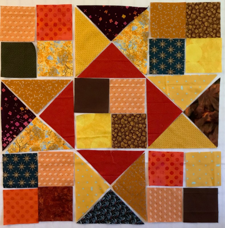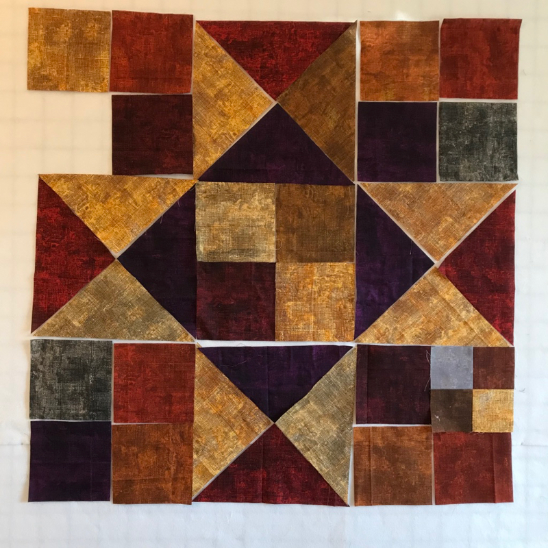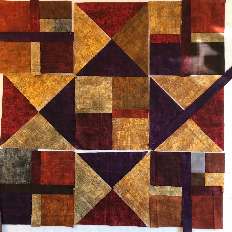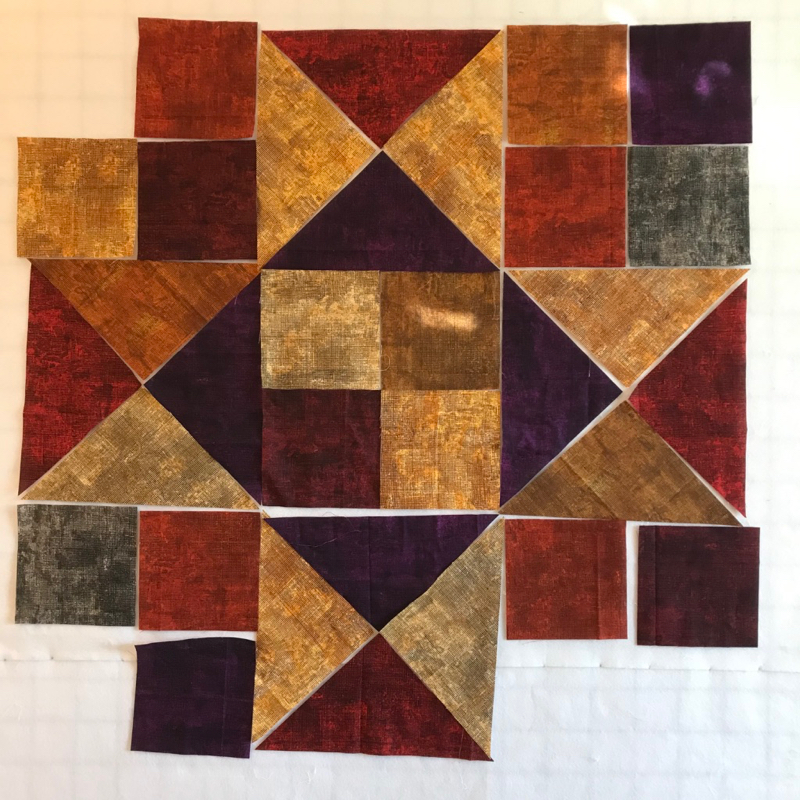 I’m getting ready to do a live-online presentation and teaching at Glendale Quilt Guild next week, and a deadline always sends my I-should-try-this into overdrive. So while I have the Criss-Cross pattern up online, and I thought I was pretty settled, a little voice in the back of my head said I should try some autumn colors in the largest size block in the pattern.