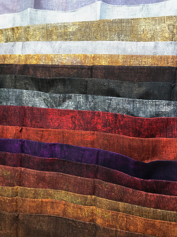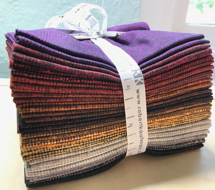 …this fell out of a bin. It was Jennifer Sampou’s Chalk and Charcoal fat quarter stack, purchased some years ago. I used to have it out on a surface, just because I liked the colors so much, but had never opened it. (I’m sure you have never done this.)