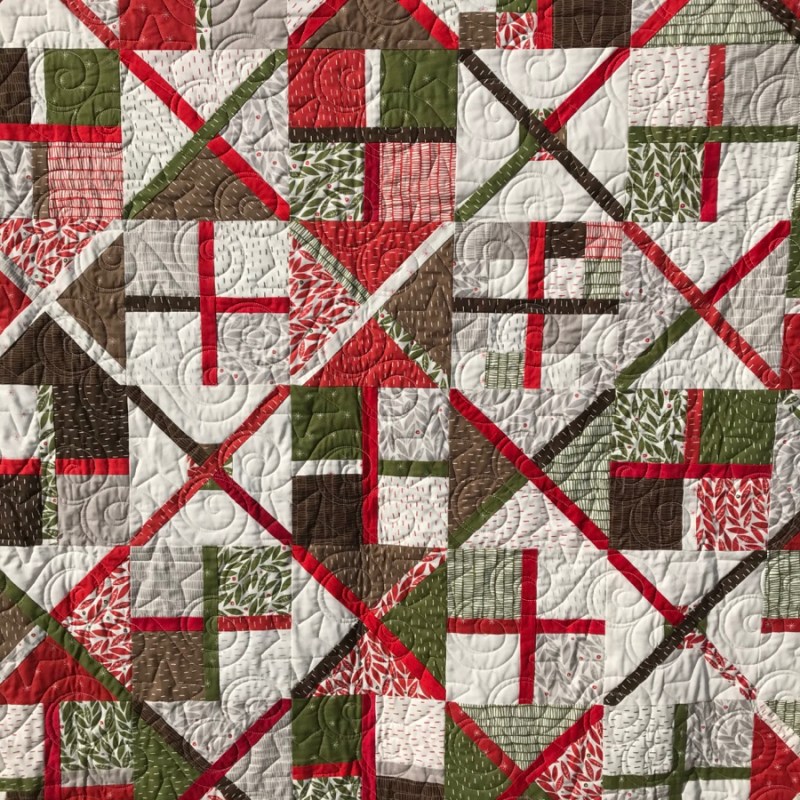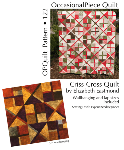 Leave me a comment at the end, tell me about what colors are in your landscape around you right now, and how you feel about those colors. I’ll pick a winner using the husband-draw-a-paper-out-of-hat method, and let the winner know by email. Here are some image/photos of Criss-Cross Quilt, done in Christmas fabrics: