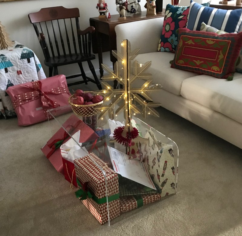 6. Oh my, what an eye candy post! The quilt came out so well. I can just feel how cozy it is! Dave’s photos and decorating both dazzle. I love the tableau of your coffee table, gifts, and brass Christmas tree.