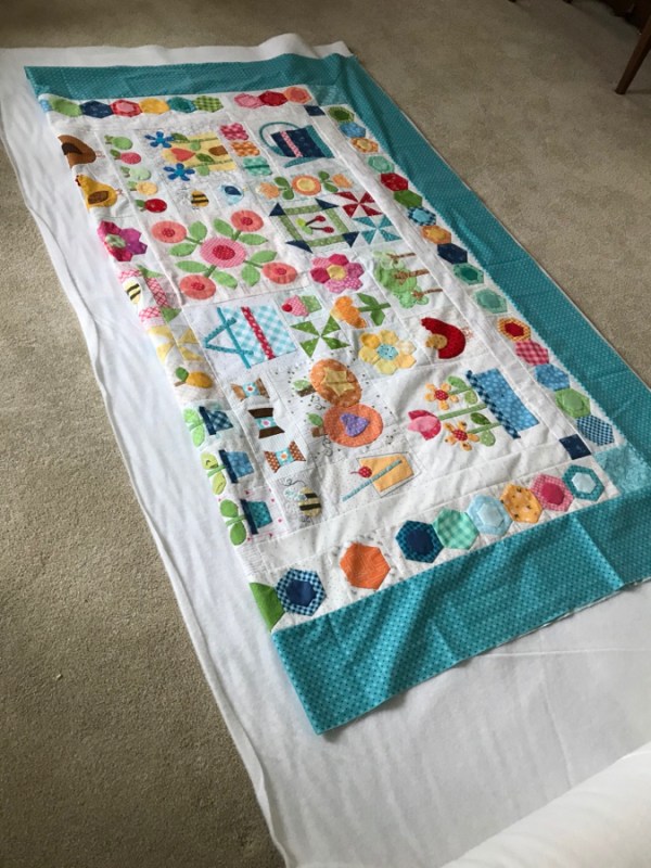 Yes, I’m going to talk about making curves, but it’s part of a path that began after I finished the Bee Happy Quilt. You know what comes next: either get it quilted by check, or if you are daft enough, quilt it yourself. (Above: measuring and cutting the batting). But the hardest part is coming up with ideas, so then I check Instagram. I found Rebecca Silbaugh of rubybluequilts and generally followed along to what she had quilted for customers’ quilts like mine. It wasn’t exact, but it gave me a roadmap.