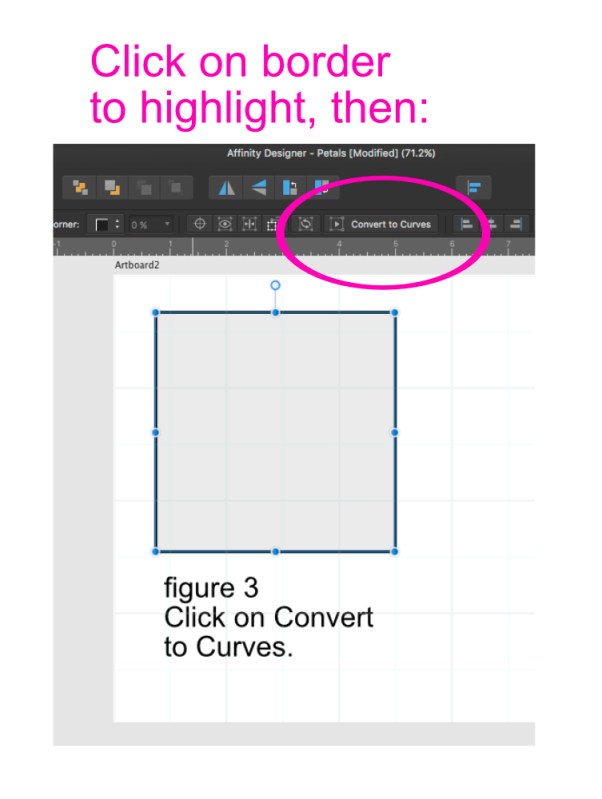 Then I did what it says. I clicked on the border to highlight it, then converted it to curves. That lets each side and each corner move independently of the others.