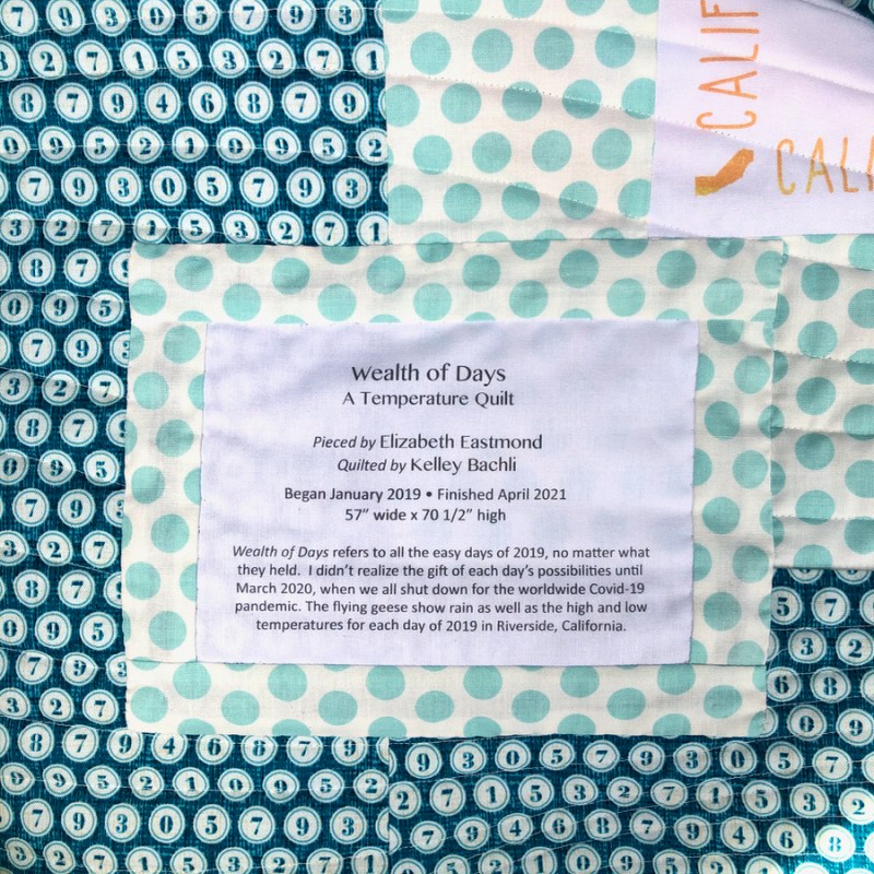 10. Wealth of Days is a perfect name for this quilt. I saw it on IG this morning and glad to read a lot more detail here. It’s a beautiful quilt already but wow, it is so packed with meaning. Who knew that 2019 would seem so “normal” in retrospect. Reading through your journal entries reminds me I should be more specific in mine about the projects I’m working on, and not just write things like “quilted some” (I keep a five year diary, just a few lines a day).