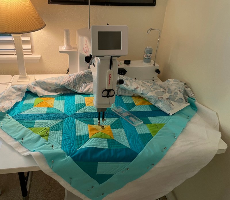 Quilting SeaDepths (a variation of Azulejos) in spurts, while listening to this: