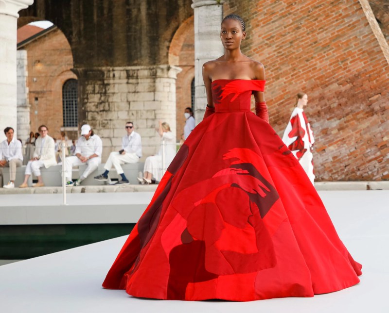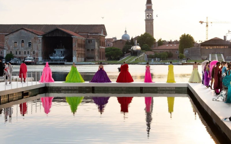 As Vanessa Friedman of the New York Times wrote: “[The designer Piccioli] has been conversing with contemporary artists — about their work, sure, but mostly about life in general, process, emotion, what turns them on — thinking about how to integrate their points of commonality in cloth…The result — shown at sunset beneath the brick arches of the former shipbuilding yard of Venice, with water lapping at the edges of the runway…was as powerful an argument for the interconnectedness of time, human connection and creativity as anything fashion has produced. The lushness of Mr. Piccioli’s palette — as a designer, he is the best colorist since Yves Saint Laurent — was on full display; so was his throwaway elegance, and his generosity. Not just to his atelier (his show notes name-checked the individuals who sewed each garment [italics are mine]) but to the bodies that will wear the clothes.”