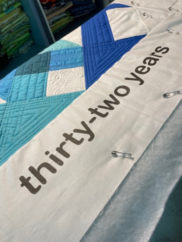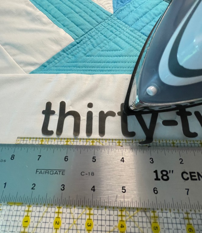 I pressed it well. Yes, I pinned the quilt together first, quilted the center, then added the letters.