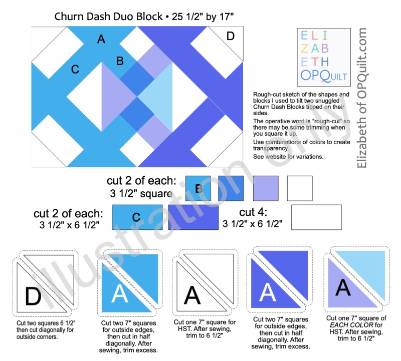If you want to play with a snuggled-up Churn Dash Block duo, then click on the link below to download my rough guide (PDF):