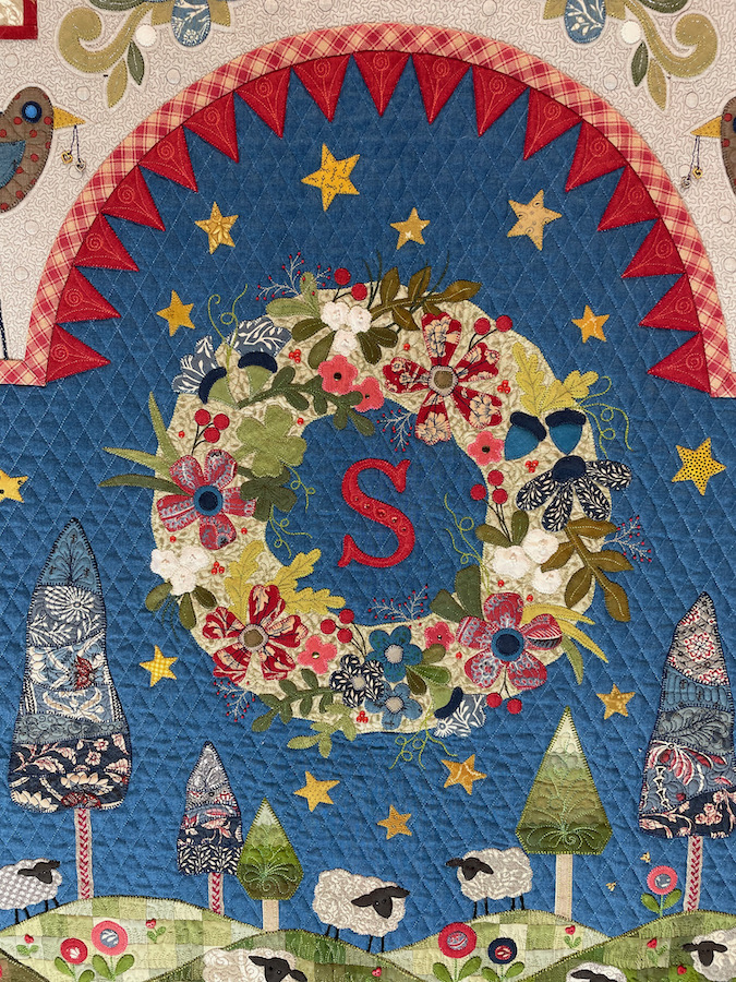 Okay, I know you were waiting for a Janet Stone Quilt. She works with the alphabet, for those who don’t know her work, and always includes a sheep/lamb/ewe somewhere in the quilt. This has them all in abundance.