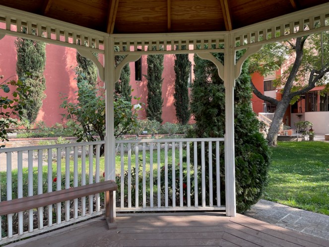 We took our lunches outside to this gazebo–in the old days we would have cranked away at the sewing machines inside; now we escape to the beauties of the world a little more often.