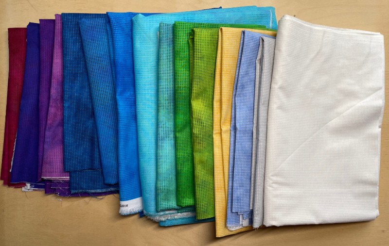 Perhaps that’s why when I went to QuiltCon in February, I tried to find things to give me a spark. I loved my two classes from Cassandra Beaver and Verushka Zarate, and enjoyed the lectures. It was fun to see people again in the wild, but there were some interesting moments of confusion in identifying people because we were all masked. And perhaps that’s why — when I went into a real-live quilt shop in Phoenix, and maybe because they gave QuiltCon-ers 20% off, I snapped up a range of beautiful colored semi-solids. Some one in line asked me what I was going to do with all those, all I say was, “We’re supposed to have a plan before we buy?”