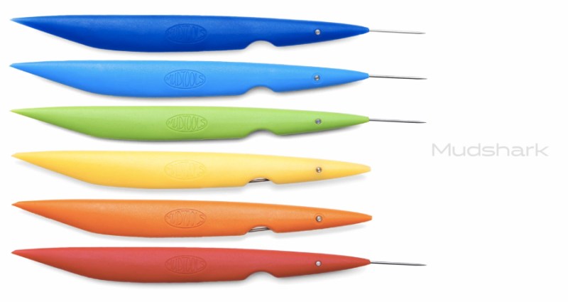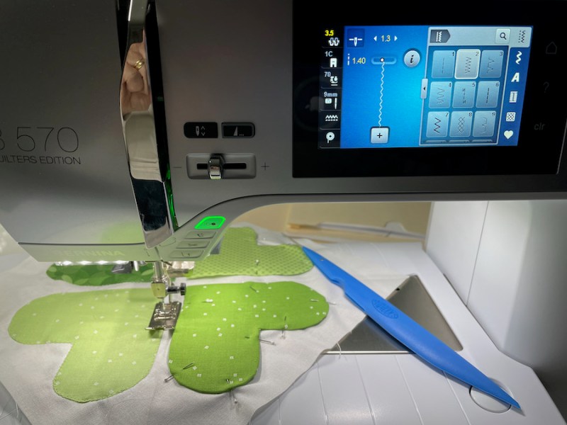 This clay tool, Mudshark from Mudtools, is one of my favorite stiletto tools for working with machine appliqué. It’s easier for me to hold and the tip is quite long. I also just like the colors. I bought it in the Smithsonian Museum after seeing an exhibit about Michael Sherrill. I figured if he used it and got such beautiful work, then I was going to lean in on his skills and start using it myself.
