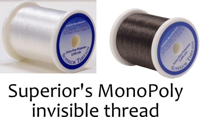 I use MonoPoly as the top thread. I use both their Clear and their Smoke, depending on what colors of fabrics I’m working with. The smoke (as their website says) is a reduced sheen invisible thread.