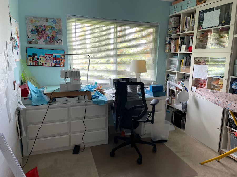 11. LOVE, LOVE the way your quilt finished. The red border with the applique is just stunning. I haven’t tried online patterns yet. I enjoy clothing sewing, but have always either used paper patterns or designed my own patterns. I’ll have to research that further. That blue color is sooo you!!! 😉 Yep, no printed paper here either.