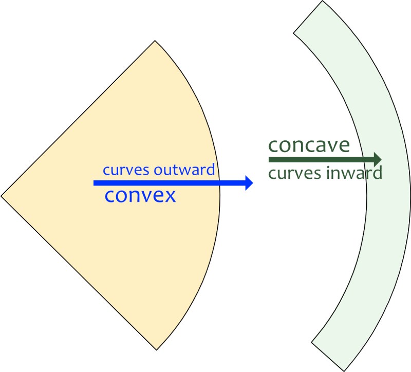 Here’s a drawing for you, if you need it like I always do. The green arc actually has both a concave surface (where it faces the yellow quarter-circle), and a convex surface (on the right side of the arc).