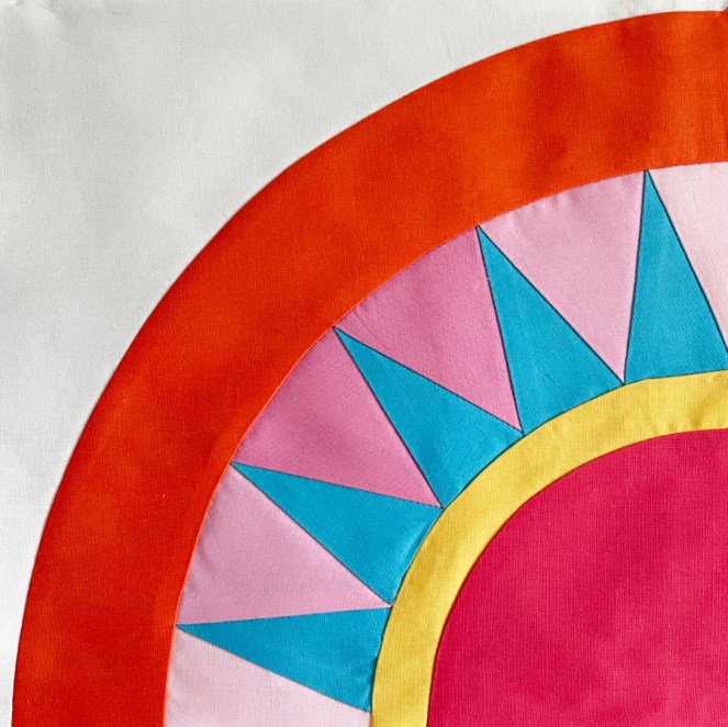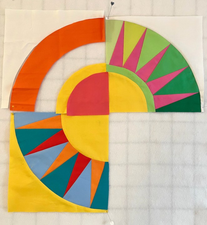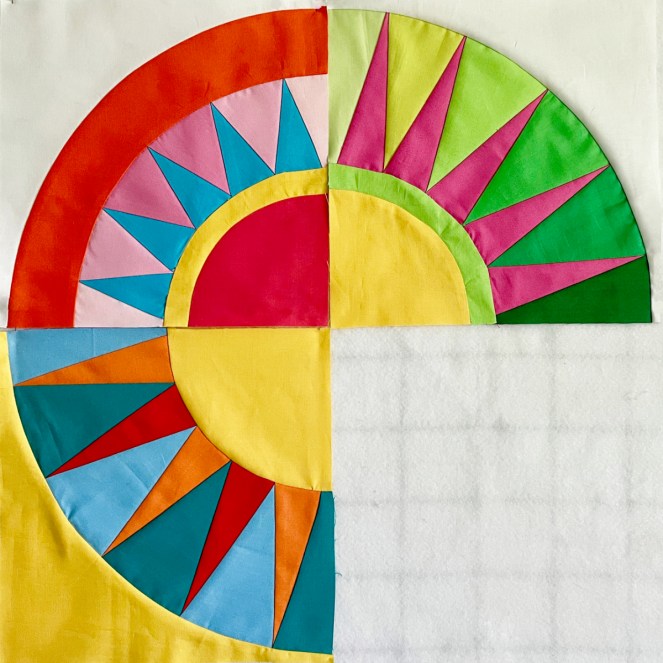 Checking colors. I also did a half-ombre on this set of rays — from lighter pink on the outside rays to darker pink in the middle. I like how the blocks all play together nicely with the shaded areas leading the eye around the circles.