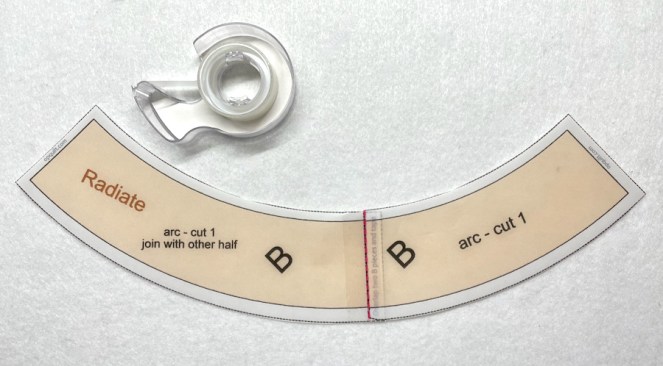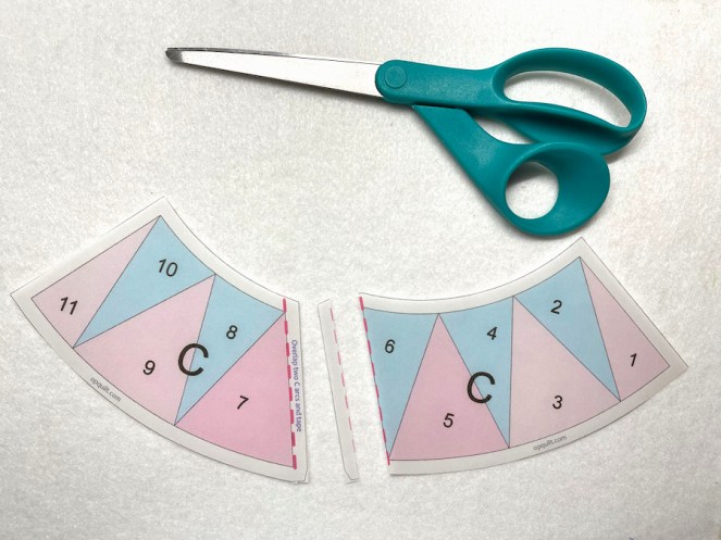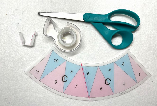 You know the drill by now: overlap and tape or glue at pink dotted line to make the larger arc.
