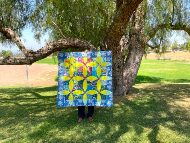 Those nine-patches of blue, with sunny yellow centers, kept me grounded through the hard parts, the tense videos, the growing realization that our American collective had been ruptured. I thrive in my quilt collective, and want to thrive in my nation, too. I hope we can come together and rebuild, put together “small, rich [stories]” while we “try things and fail and ignore for a while the demands and dogmas of the world outside.”