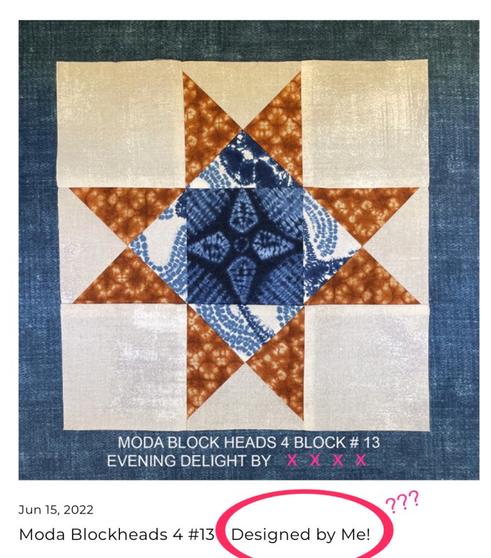 So the second image, that of a Star of Hope block, with the person who put the fabric choices together proclaiming “Designed by Me!”