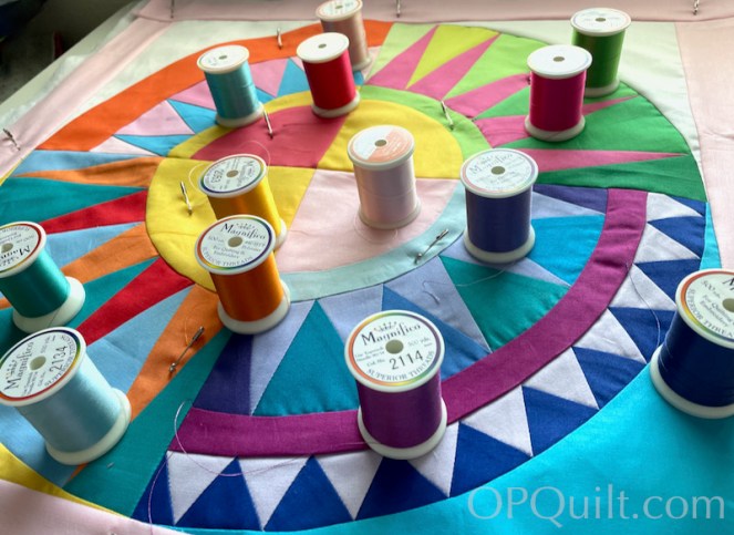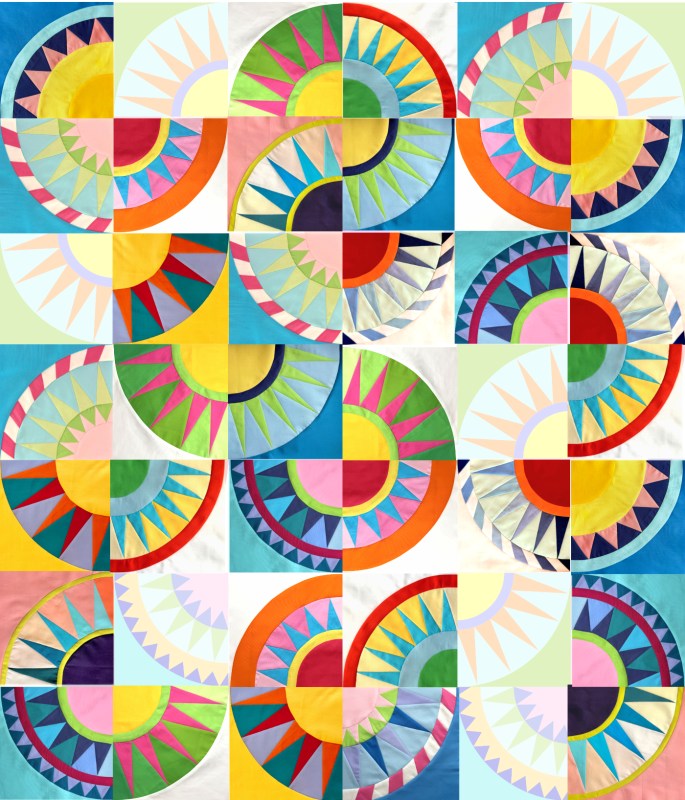 Here’s Ocean Gleam pasted in digitally to the quilt. Looking fun and fancy!