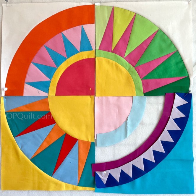 I dedicated a lot of digital real estate in the last New York Beauties Quilt post talking about how I work with FPP. Head over there if you need more info; scroll down as it is below Block Three. This block has two rows of rays and two bands, but you are up to this task, I know.