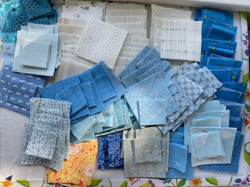 It reminds me of the Meadow Quilt from the designer Lizzy House (shown above) back in the day, a quilt which doesn’t have a released pattern and was taught for several years only in workshops. I have always loved this quilt, but when I saw this Blooming Scraps pattern, I knew it would be a good one to keep my hands busy while my mind explored all the ramifications of the world we now live in (translation: the J6 Hearings and SCOTUS decisions).